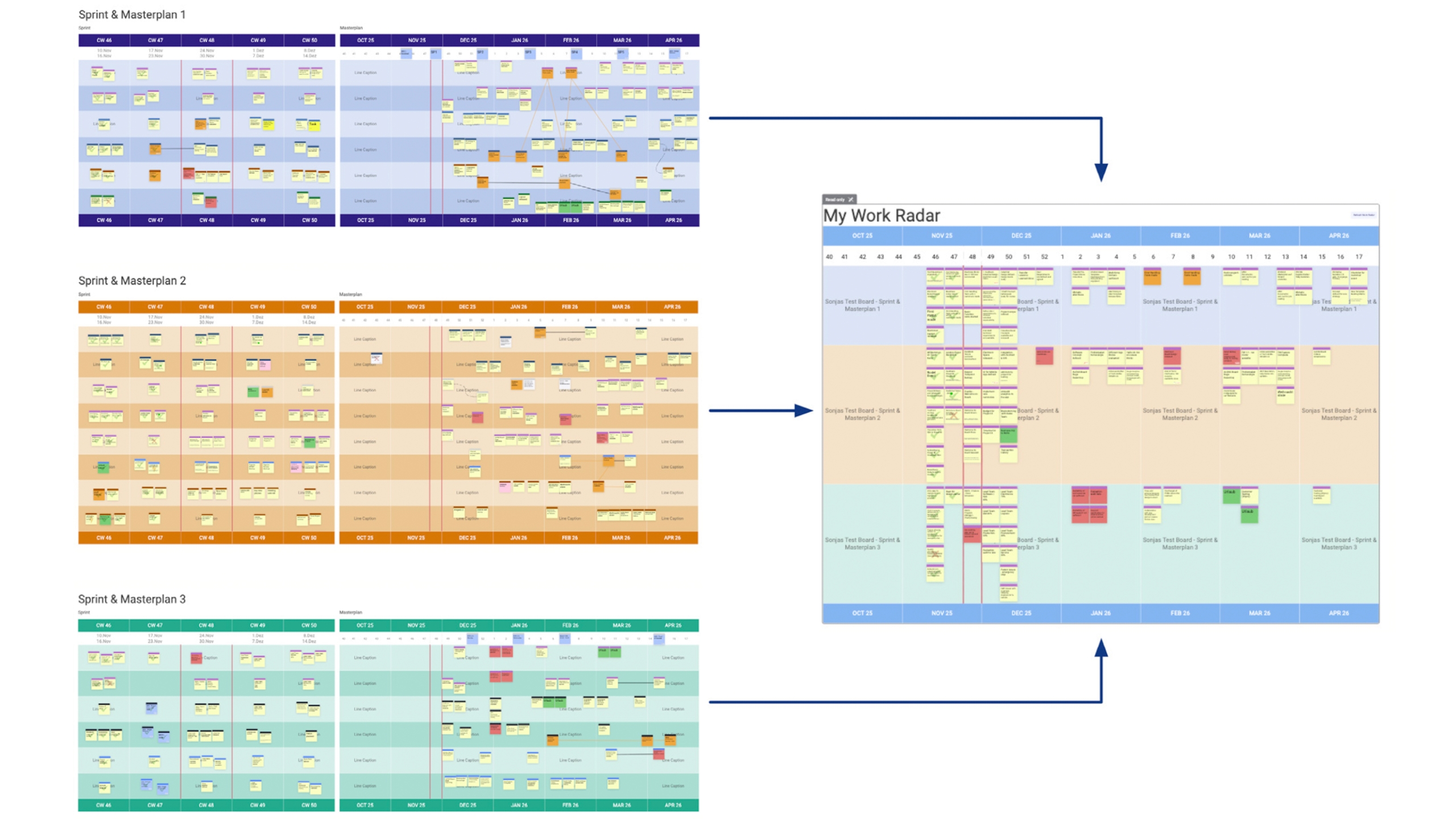 - Work Radar: Display sticky notes from multiple Sprint & Masterplan in a single, time-based overview
